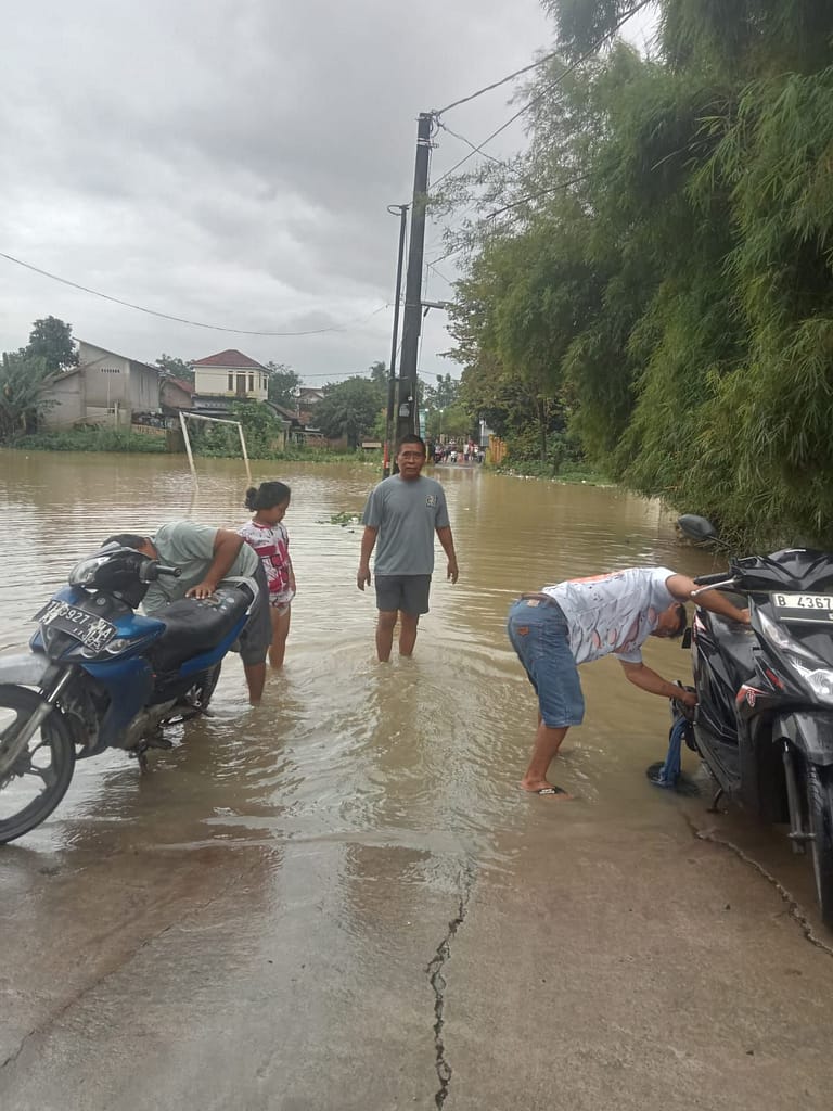 Komnasbpklhnews.com Kabupaten Bekasi – Lapangan Bojong Sari terendam banjir pada Jumat 20/02 menyebabkan akses jalan menuju Kampung Nanggewer, Desa Laban Sari terputus total. Kondisi ini membuat Ketua 1 Perlindungan Konsumen (PK) Komite Nasional Bantuan Hukum Perlindungan Konsumen dan Lingkungan Hidup (Komnas BPKLH) Dewan Pimpinan Kabipaten (DPK) Bekasi, BP Juhana, mengimbau seluruh warga untuk tetap dalam keadaan siaga 1 setiap kali air mulai menunjukkan tanda akan naik.