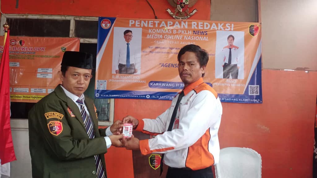 Penyerahan KTA dilakukan langsung oleh Pemimpin Redaksi Agus pada nama Komnas bpklhnews.com, sebagai bentuk pengakuan resmi terhadap peran dan tugas Bapak Saepul hidayat dalam mengelola serta mengembangkan media online di wilayah Purwakarta.